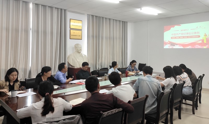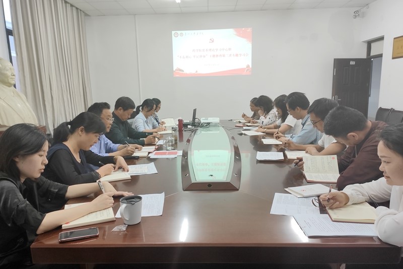 10月10日,药学院党委理论学习中心组“不忘初心、牢记使命”主题教育第三次专题学习会,在崇义楼418会议室举行。院党委书记凃华君,党委副书记、院长欧阳贵平,副书记张豫芳,党委委员、副院长李焱及总支、支部书记参加了会议。