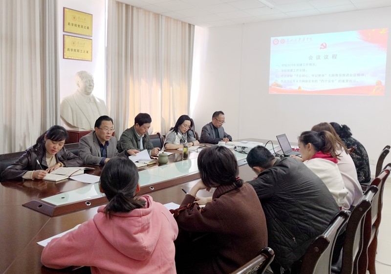 10月29日,药学院党委在崇义楼418会议室,召开了“不忘初心、牢记使命”主题教育党建工作会议, 学院党委成员,总支及支部书记参加会议。会议由院党委书记凃华君主持。