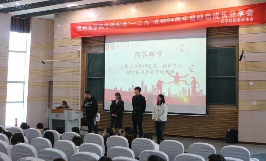 本次分享会由药剂161班晏欣、制药161班袁芳、制药171班代正义以及药学181班王欢欢向同学们分享他们的励志成长故事。