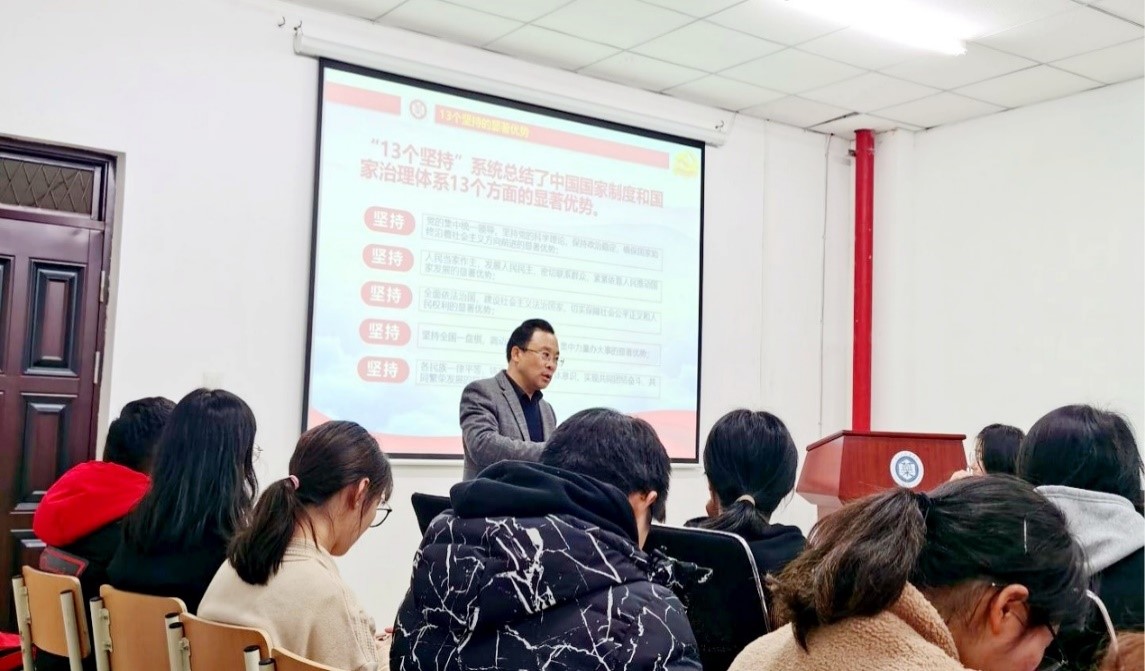 12月17日,药学院党委书记凃华君结合“不忘初心、牢记使命”主题教育,在崇义楼612会议室为全院师生党员作题为《筑牢实现伟大复兴的制度保障 学习贯彻党的十九届四中全会精神》专题党课,宣讲党的十九届四中全会精神。