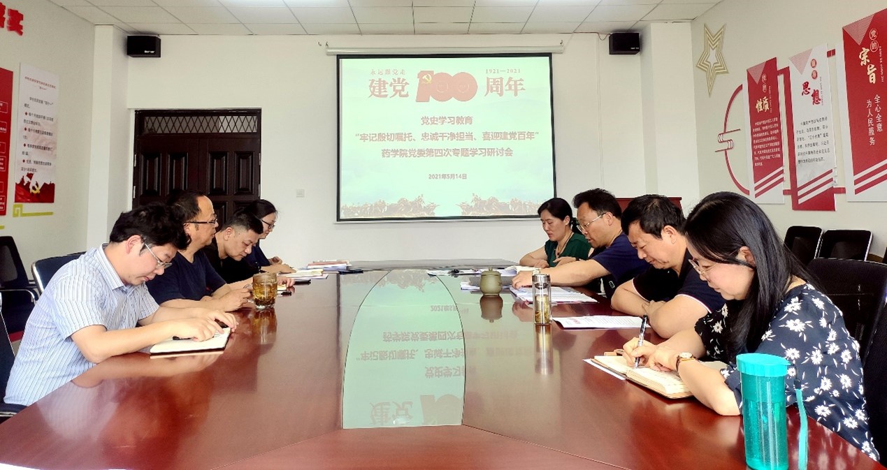 5月14日下午,药学院党委在崇义楼621组织开展党史学习教育、“牢记殷切嘱托、忠诚干净担当、喜迎建党百年”专题教育第四次专题学习研讨会。学院党委中心组成员、各总支、支部书记参加了会议。会议由院党委书记凃华君主持。